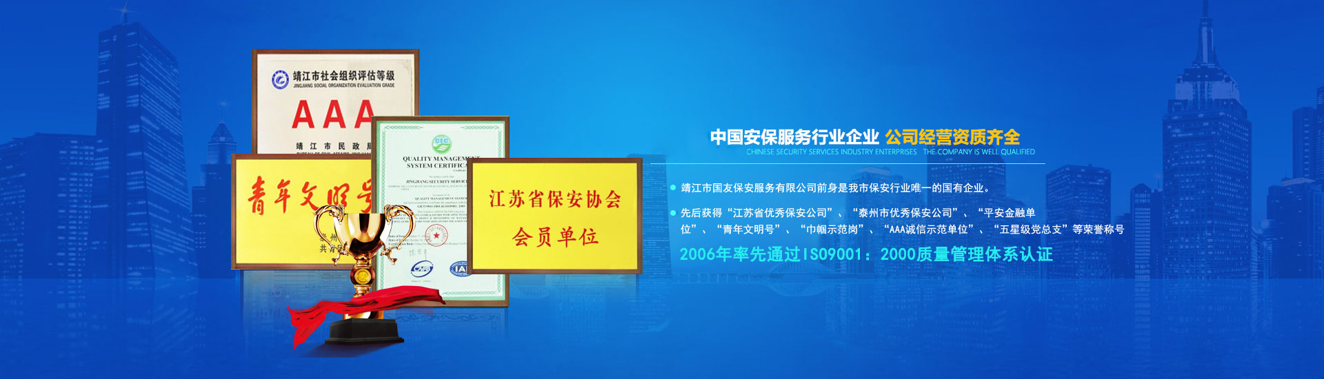 公司,泰州市優(yōu)秀保安公司等榮譽