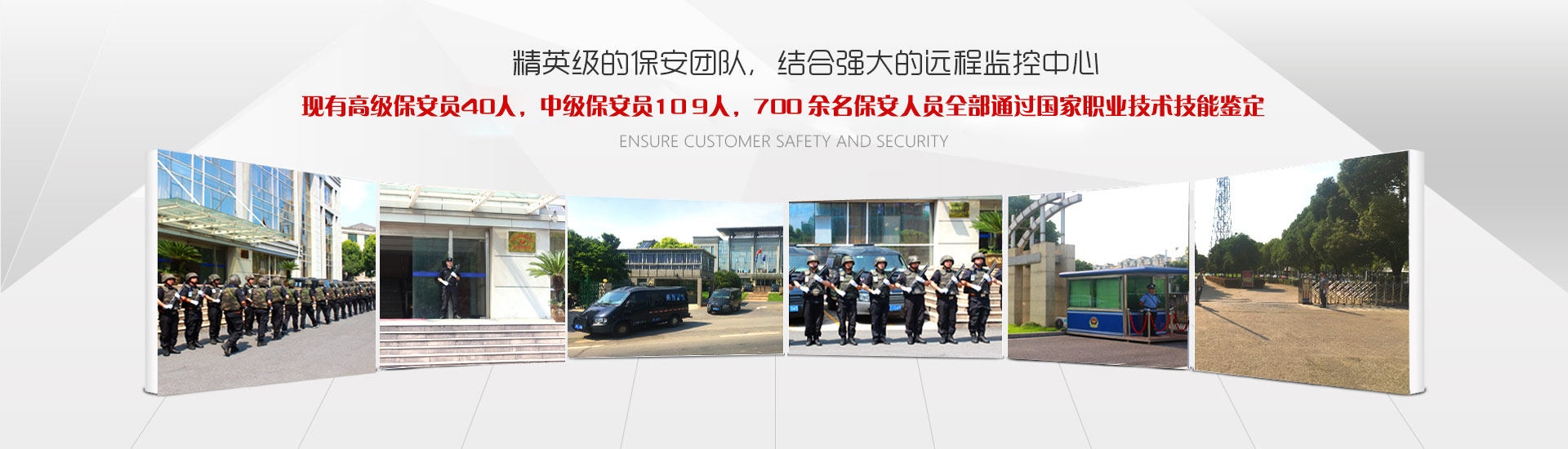 公司擁有一大批經(jīng)驗豐富,勇于創(chuàng)新的優(yōu)秀管理人員,現(xiàn)有高級保安員40人,中級保安員109人。